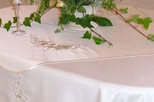 Obrus plamoodporny ecru Bratki haft ecru owal