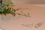 Obrus plamoodporny ecru Bratki haft ecru owal