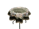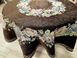 Obrus okrągły gobelinowy z szenilem brązowy Kwiaty wzór Róże Fi160
