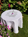 Obrus lniany biały ręcznie haftowany Snutki -koło