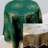 Obrus Świąteczny plamoodporny metalizowany dwustronny zielono - złoty - koło