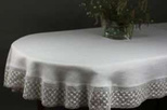 Obrus lniany biały Helena z beżową koronką -owal