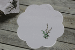 Serwetka plamoodporna biała haftowana Przebiśniegi z koronką