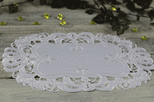 Serwetka plamoodporna biała z haftem richelieu wzór D-owal