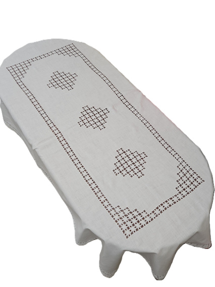 Obrus lniany ręcznie  haftowany mereżka Snutki biały